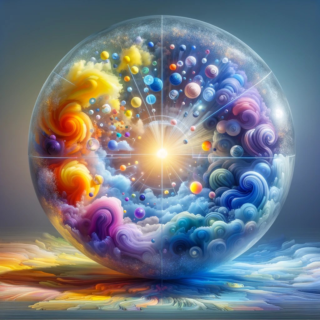 - The sphere’s base color reflects the dominant emotional state. Warm colors (yellows, oranges, reds) suggest a positive atmosphere, while cooler hues (blues, purples, greens) indicate a prevalence of negative emotions.