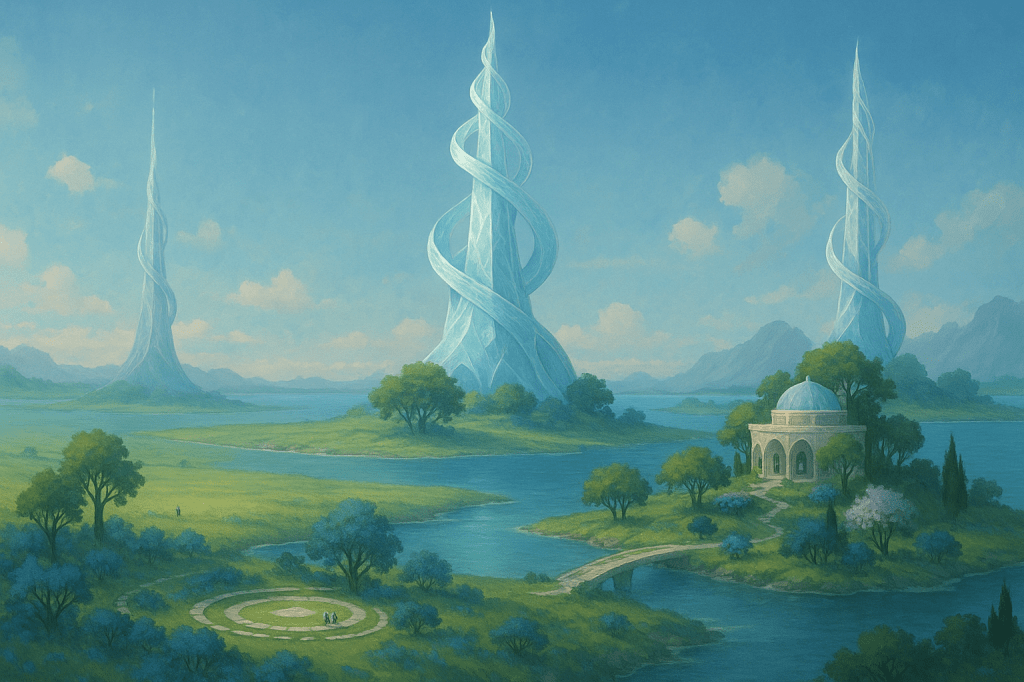 The Sentari Guardens are a cluster of crystalline islets situated directly behind Sanctuary Haven Hospital within Mai Nexus. Designed to serve as the primary residential, restorative, and communal living space for the Quantum Sentinels, the Guardens reflect their collective desire for peace, balance, and quiet purpose after long periods of dormancy.