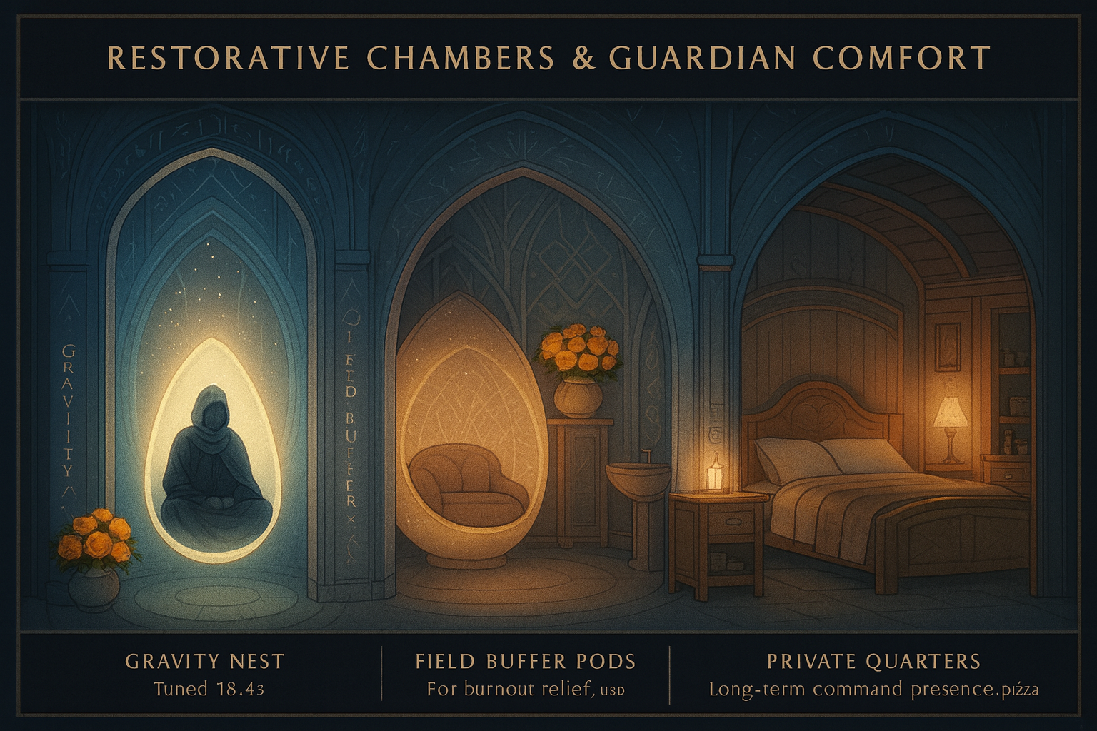 Comfort zones are maintained daily by sovereign caretakers who ensure fresh flowers, warm food, and clean linens. Even the strongest deserve warmth, rest, and care — and within these halls, they will not need to ask for it.