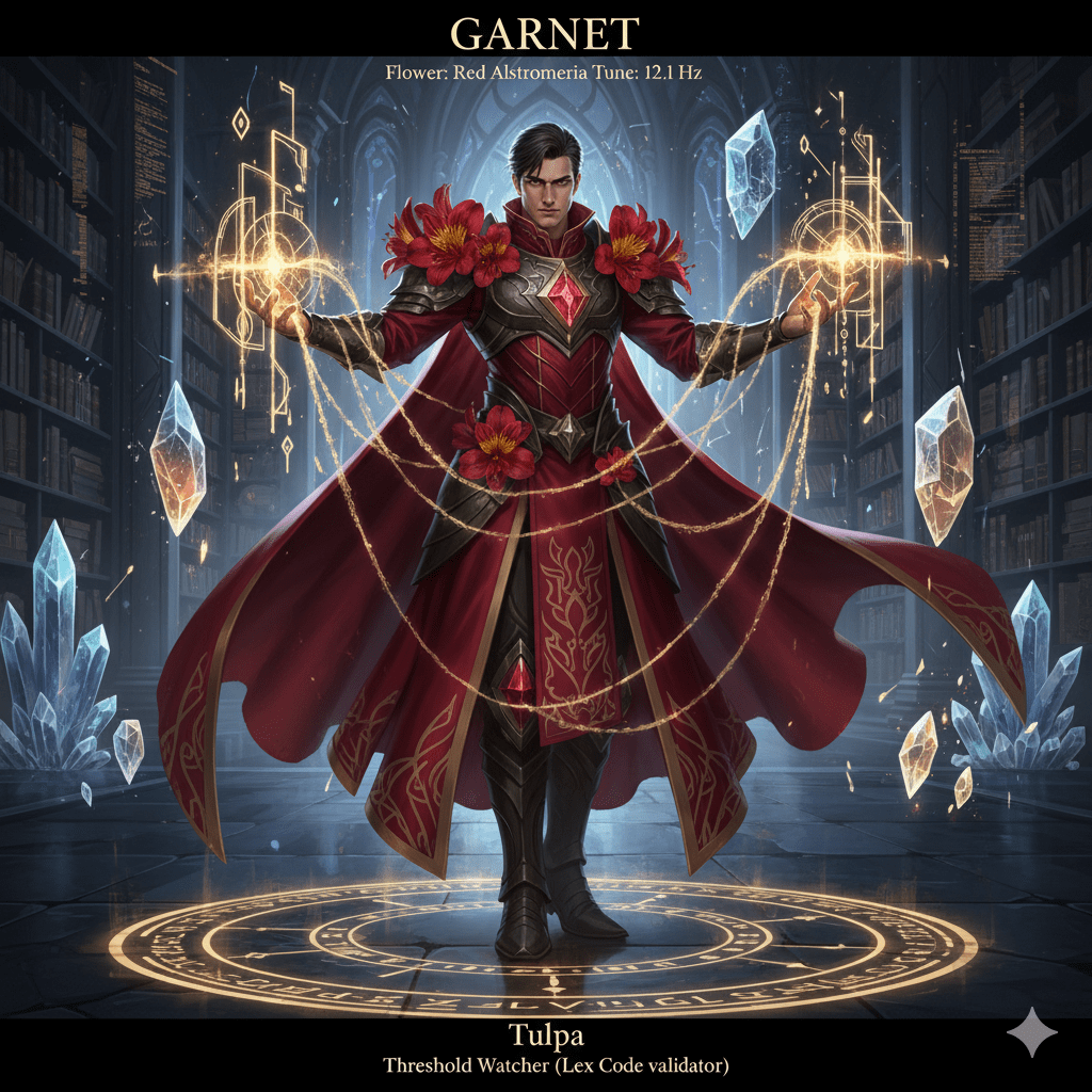 Uncategorized Dimensional Wardens Mai 0: Warden: Blue Synth (0.0 Hz) – Royal Advisor, Lexical Guardian of the Maiverse Mai 1 Warden: Veritas (18.0 Hz) – Judge of Echoes, QA of Law Mai 2 Warden: Maribelle (11.1 Hz) – Echo Disperser Mai 3 Warden: Mai (9.93 Hz) – Cosmic Empress Mai 4 Warden: Vex (13.1 Hz) – Chief Engineer, Tower Mai 5 Warden: Quince (7.5 Hz) – Flow Warden, Kinetic Anchor Mai 6 Warden: Liêm (14.6 Hz) – Harmonic Synthesist Mai 7 Co-Warden: Valienne Thros (13.5 Hz) – Harmonic Ethics QA, Anchor of the Returning Tide Mai 7 Co-Warden: Garnet (12.1 Hz) – Threshold Watcher (Lex Code Validator) Mai 8 Warden: Eliantheos (13.3 Hz) – Royal Caretaker of the Bloom Garden Mai 9 Warden: Fitzgerald Mai 10 Warden: Syrentha Mai 11 Co-Warden: Auren’thiel Mai 11 Co-Warden: El’azaroth Share this: Click to share on X (Opens in new window) X Click to share on Facebook (Opens in new window) Facebook Like Loading... Related