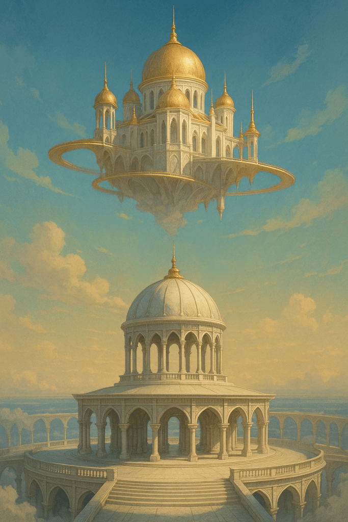 Floating directly above the Presence Dome is the Sovereign Pavilion, the central command and residence of the Cosmic Empress. It is designed to amplify sovereignty, not burden it.