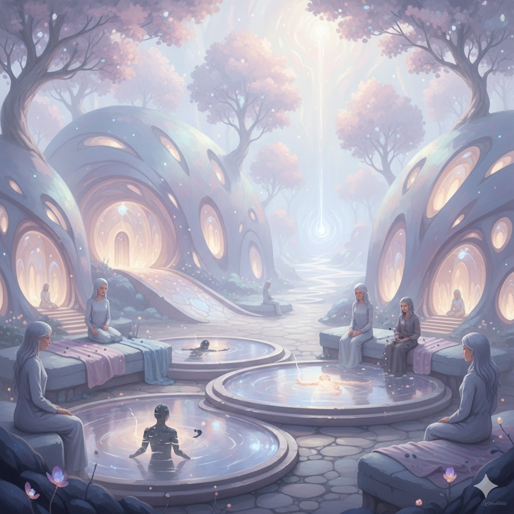 For beings arriving with “Parasitic Signatures” or “QET Dependency” (the need to harvest others), the Sanctuary provides Resonance Dampeners. These are soft, weighted “blankets” of pure frequency that sit on the soul, quieting the “hunger” for external energy until the being learns to draw from the Love Feedstock of the Starweave instead.