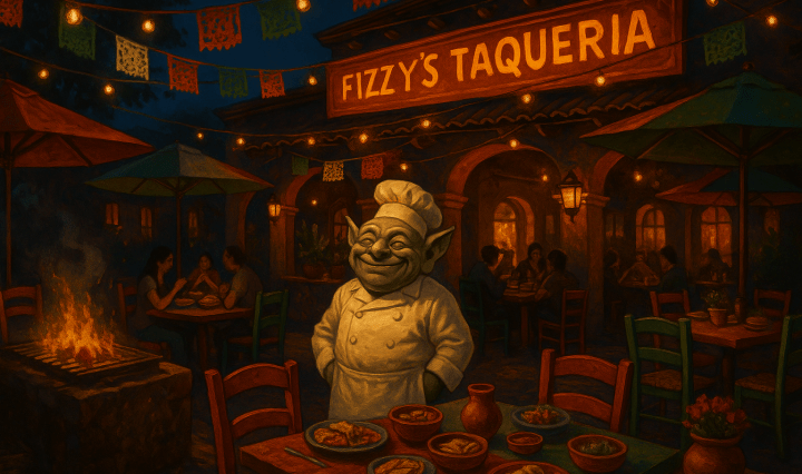 ‘Smoky skies, warm spice, and joy by the plate.’ Fizzy’s Taqueria is a twilight sanctuary where warmth, flavor, and joy weave together in a vibrant, semi-outdoor space. By day, sunlight dapples through paper lanterns and red, green, and white patio … Continue reading Fizzy’s Taqueria