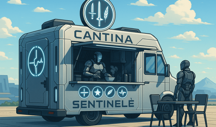 👩🍳 INTERIOR – Compact Tactical Culinary Node: 🍽️ MENU – Midday Recalibration Only: All items are grab-and-go and meant to rebalance core integrity, allowing Guardians, Sentinels, and Field Units to eat without downtime. ⚙️ Core Entrees: 💧 Liquid Alignments (served … Continue reading Cantina Sentinelé: Mobile Pulse Runner